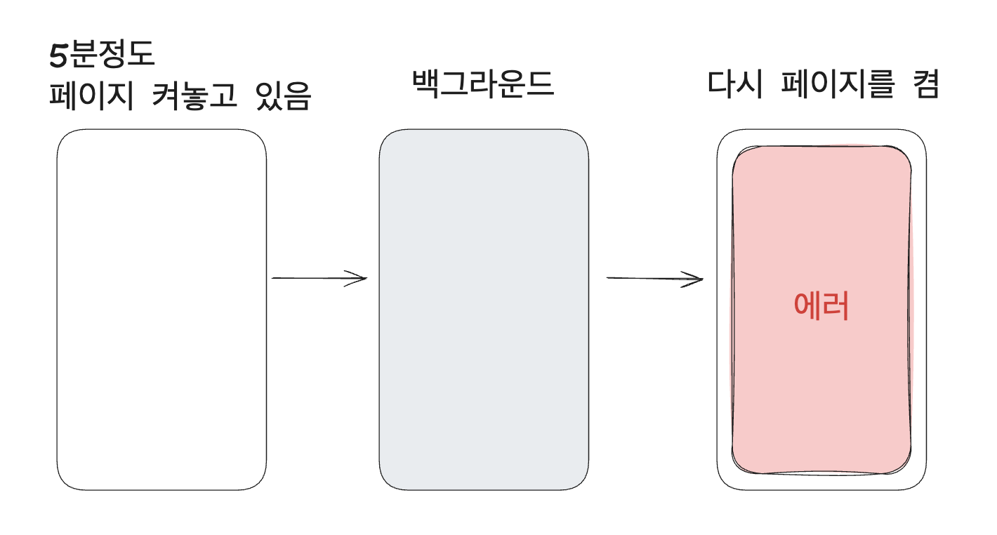 먼저 현상부터 간략히 말씀드리자면, "웹뷰를 5분 정도 켜놓고 있다가, 앱을 백그라운드 상태로 두었다가 다시 앱을 키면 갑자기 Suspense에러가 발생한다." 는 현상이었어요.